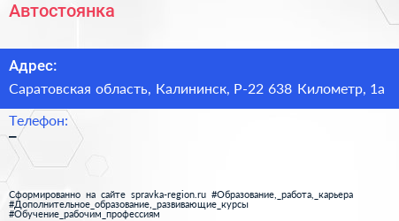 Адрес: Саратовская область, Калининск, Р-22 658 Километр, 1а