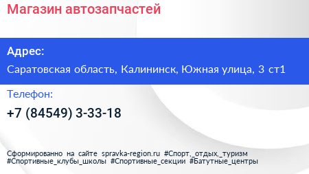 Магазин автозапчастей по адресу Саратовская область, Калининск, Южная улица, 3 ст1 в дальнейшем Организация, размещена в следующих категориях: