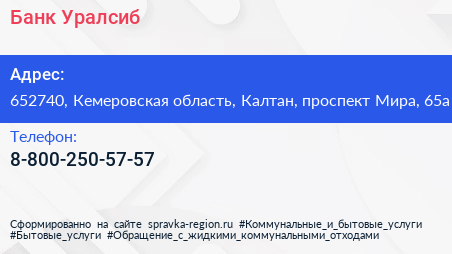 Банк Уралсиб по адресу 652740, Кемеровская область, Калтан, проспект Мира, 65а в дальнейшем Организация, размещена в следующих категориях: