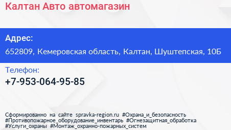 Калтан Авто, автомагазин по адресу 652809, Кемеровская область, Калтан, Шуштепская, 10Б в дальнейшем Организация, размещена в следующих категориях: