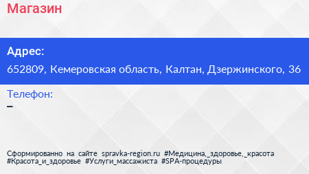 Магазин по адресу 652809, Кемеровская область, Калтан, Дзержинского, 36 в дальнейшем Организация, размещена в следующих категориях: