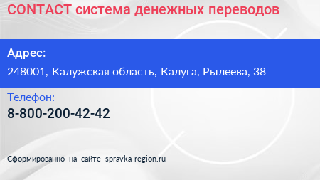 CONTACT, система денежных переводов по адресу 248001, Калужская область, Калуга, Рылеева, 38 в дальнейшем Организация, размещена в следующих категориях: