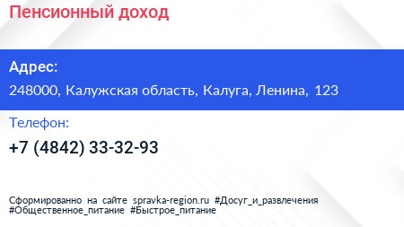 Пенсионный доход по адресу 248000, Калужская область, Калуга, Ленина, 123 в дальнейшем Организация, размещена в следующих категориях: