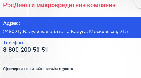 РосДеньги, микрокредитная компания по адресу 248021, Калужская область, Калуга, Московская, 215 в дальнейшем Организация, размещена в следующих категориях: