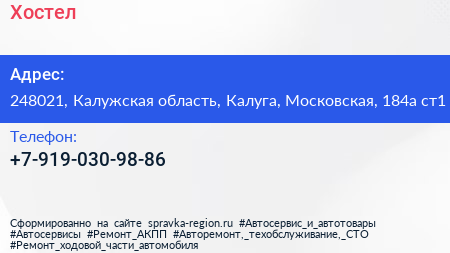 Хостел по адресу 248021, Калужская область, Калуга, Московская, 184а ст1 в дальнейшем Организация, размещена в следующих категориях: