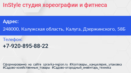InStyle, студия хореографии и фитнеса по адресу 248000, Калужская область, Калуга, Дзержинского, 58Б в дальнейшем Организация, размещена в следующих категориях: