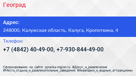 Геоград по адресу 248000, Калужская область, Калуга, Кропоткина, 4 в дальнейшем Организация, размещена в следующих категориях: