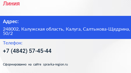 Линия + по адресу 248002, Калужская область, Калуга, Салтыкова-Щедрина, 50/2 в дальнейшем Организация, размещена в следующих категориях: