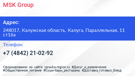 MSK-Group по адресу 248017, Калужская область, Калуга, Параллельная, 11 ст16а в дальнейшем Организация, размещена в следующих категориях: