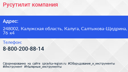Русутилит, компания по адресу 248002, Калужская область, Калуга, Салтыкова-Щедрина, 76 к4 в дальнейшем Организация, размещена в следующих категориях: