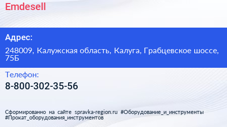 Emdesell по адресу 248009, Калужская область, Калуга, Грабцевское шоссе, 75Б в дальнейшем Организация, размещена в следующих категориях: