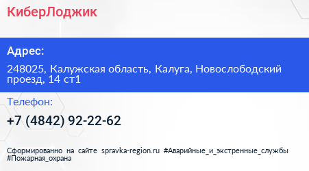 КиберЛоджик по адресу 248025, Калужская область, Калуга, Новослободский проезд, 14 ст1 в дальнейшем Организация, размещена в следующих категориях:
