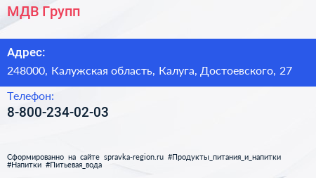 МДВ Групп по адресу 248000, Калужская область, Калуга, Достоевского, 27 в дальнейшем Организация, размещена в следующих категориях: