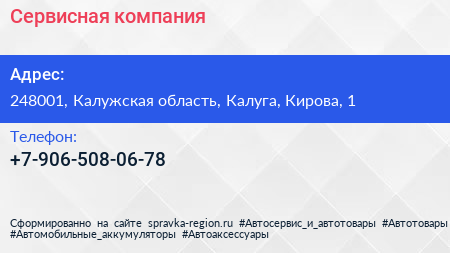 Сервисная компания по адресу 248001, Калужская область, Калуга, Кирова, 1 в дальнейшем Организация, размещена в следующих категориях: