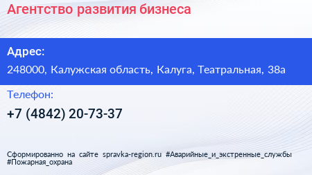 Агентство развития бизнеса по адресу 248000, Калужская область, Калуга, Театральная, 38а в дальнейшем Организация, размещена в следующих категориях: