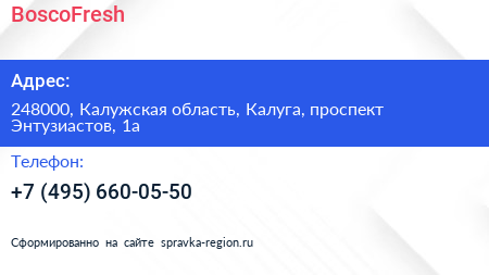 BoscoFresh по адресу 248000, Калужская область, Калуга, проспект Энтузиастов, 1а в дальнейшем Организация, размещена в следующих категориях: