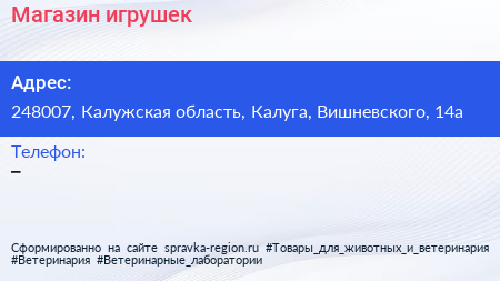Магазин игрушек по адресу 248007, Калужская область, Калуга, Вишневского, 14а в дальнейшем Организация, размещена в следующих категориях: