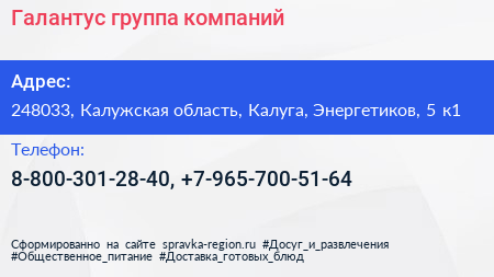 Галантус, группа компаний по адресу 248033, Калужская область, Калуга, Энергетиков, 5 к1 в дальнейшем Организация, размещена в следующих категориях: