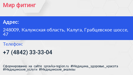 Мир фитинг по адресу 248009, Калужская область, Калуга, Грабцевское шоссе, 47 в дальнейшем Организация, размещена в следующих категориях: