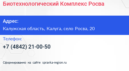 Биотехнологический Комплекс-Росва по адресу Калужская область, Калуга, село Росва, 20 в дальнейшем Организация, размещена в следующих категориях: