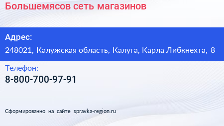 Большемясов, сеть магазинов по адресу 248021, Калужская область, Калуга, Карла Либкнехта, 8 в дальнейшем Организация, размещена в следующих категориях: