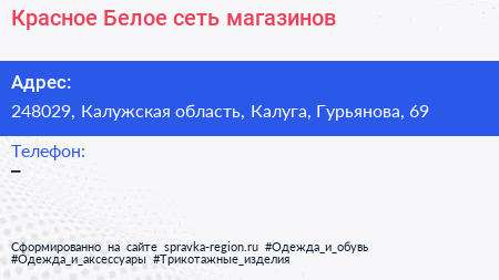 Красное & Белое, сеть магазинов по адресу 248029, Калужская область, Калуга, Гурьянова, 69 в дальнейшем Организация, размещена в следующих категориях: