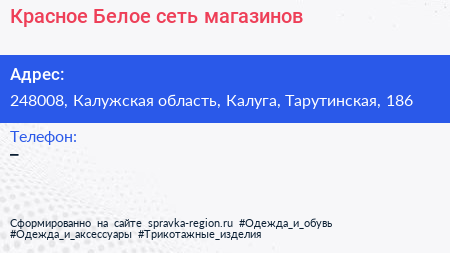 Красное & Белое, сеть магазинов по адресу 248008, Калужская область, Калуга, Тарутинская, 186 в дальнейшем Организация, размещена в следующих категориях: