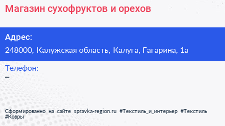 Магазин сухофруктов и орехов по адресу 248000, Калужская область, Калуга, Гагарина, 1а в дальнейшем Организация, размещена в следующих категориях: