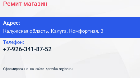 Ремит, магазин по адресу Калужская область, Калуга, Комфортная, 3 в дальнейшем Организация, размещена в следующих категориях: