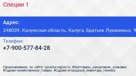 Специи №1 по адресу 248039, Калужская область, Калуга, Братьев Луканиных, 9 в дальнейшем Организация, размещена в следующих категориях: