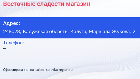 Восточные сладости, магазин по адресу 248023, Калужская область, Калуга, Маршала Жукова, 2 в дальнейшем Организация, размещена в следующих категориях: