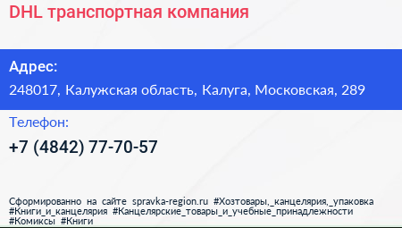 DHL, транспортная компания по адресу 248017, Калужская область, Калуга, Московская, 289 в дальнейшем Организация, размещена в следующих категориях: