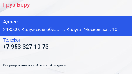 Груз Беру по адресу 248000, Калужская область, Калуга, Московская, 10 в дальнейшем Организация, размещена в следующих категориях: