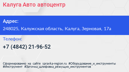 Калуга Авто, автоцентр по адресу 248025, Калужская область, Калуга, Зерновая, 17а в дальнейшем Организация, размещена в следующих категориях: