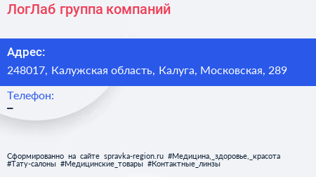 ЛогЛаб, группа компаний по адресу 248017, Калужская область, Калуга, Московская, 289 в дальнейшем Организация, размещена в следующих категориях: