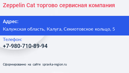 Zeppelin Cat, торгово-сервисная компания по адресу Калужская область, Калуга, Секиотовское кольцо, 5 в дальнейшем Организация, размещена в следующих категориях: