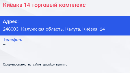 Киёвка-14, торговый комплекс по адресу 248003, Калужская область, Калуга, Киёвка, 14 в дальнейшем Организация, размещена в следующих категориях: