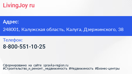LivingJoy.ru по адресу 248001, Калужская область, Калуга, Дзержинского, 38 в дальнейшем Организация, размещена в следующих категориях: