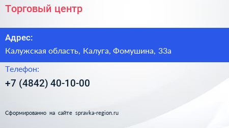 Торговый центр по адресу Калужская область, Калуга, Фомушина, 33а в дальнейшем Организация, размещена в следующих категориях: