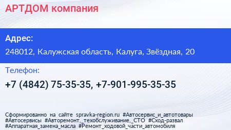 АРТДОМ, компания по адресу 248012, Калужская область, Калуга, Звёздная, 20 в дальнейшем Организация, размещена в следующих категориях: