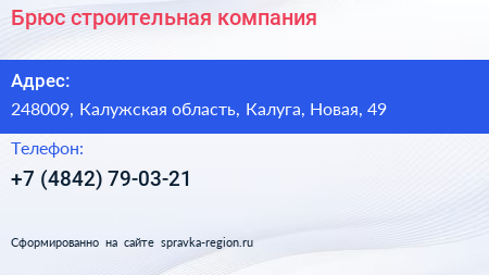Брюс, строительная компания по адресу 248009, Калужская область, Калуга, Новая, 49 в дальнейшем Организация, размещена в следующих категориях: