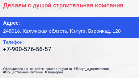 Делаем с душой, строительная компания по адресу 248016, Калужская область, Калуга, Баррикад, 128 в дальнейшем Организация, размещена в следующих категориях: