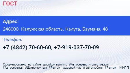 ГОСТ по адресу 248000, Калужская область, Калуга, Баумана, 48 в дальнейшем Организация, размещена в следующих категориях: