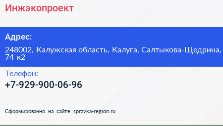 Инжэкопроект по адресу 248002, Калужская область, Калуга, Салтыкова-Щедрина, 74 к2 в дальнейшем Организация, размещена в следующих категориях: