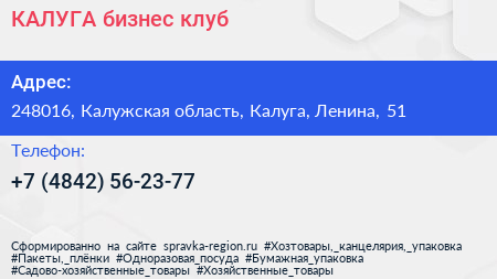 КАЛУГА, бизнес-клуб по адресу 248016, Калужская область, Калуга, Ленина, 51 в дальнейшем Организация, размещена в следующих категориях: