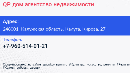 QP дом, агентство недвижимости по адресу 248001, Калужская область, Калуга, Кирова, 27 в дальнейшем Организация, размещена в следующих категориях: