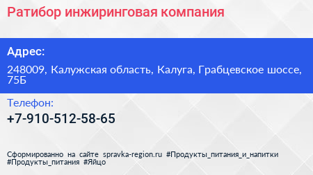 Ратибор, инжиринговая компания по адресу 248009, Калужская область, Калуга, Грабцевское шоссе, 75Б в дальнейшем Организация, размещена в следующих категориях: