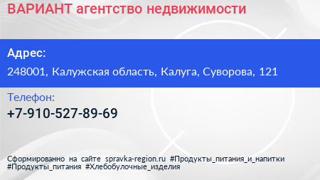 ВАРИАНТ, агентство недвижимости по адресу 248001, Калужская область, Калуга, Суворова, 121 в дальнейшем Организация, размещена в следующих категориях: