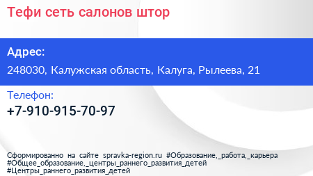 Тефи, сеть салонов штор по адресу 248030, Калужская область, Калуга, Рылеева, 21 в дальнейшем Организация, размещена в следующих категориях: