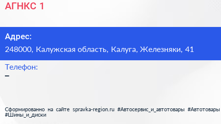 АГНКС №1 по адресу 248000, Калужская область, Калуга, Железняки, 41 в дальнейшем Организация, размещена в следующих категориях: